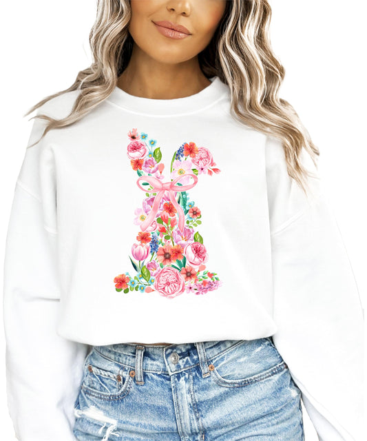 Floral Easter Bunny Sweatshirt for Women Teens and Girls Spring Watercolor Crewneck