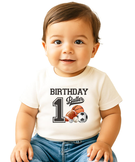 1st Birthday Baller Shirt for Boys Sports Theme Party T-Shirt for 1 Year Old