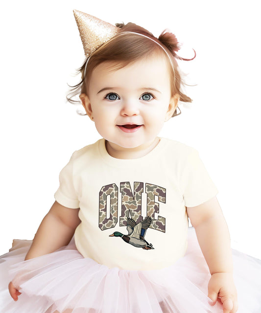 Duck Hunting Birthday Dad Shirt – Matching “ONE” Family Outfit Tee - Sold Individually Natural Shirt
