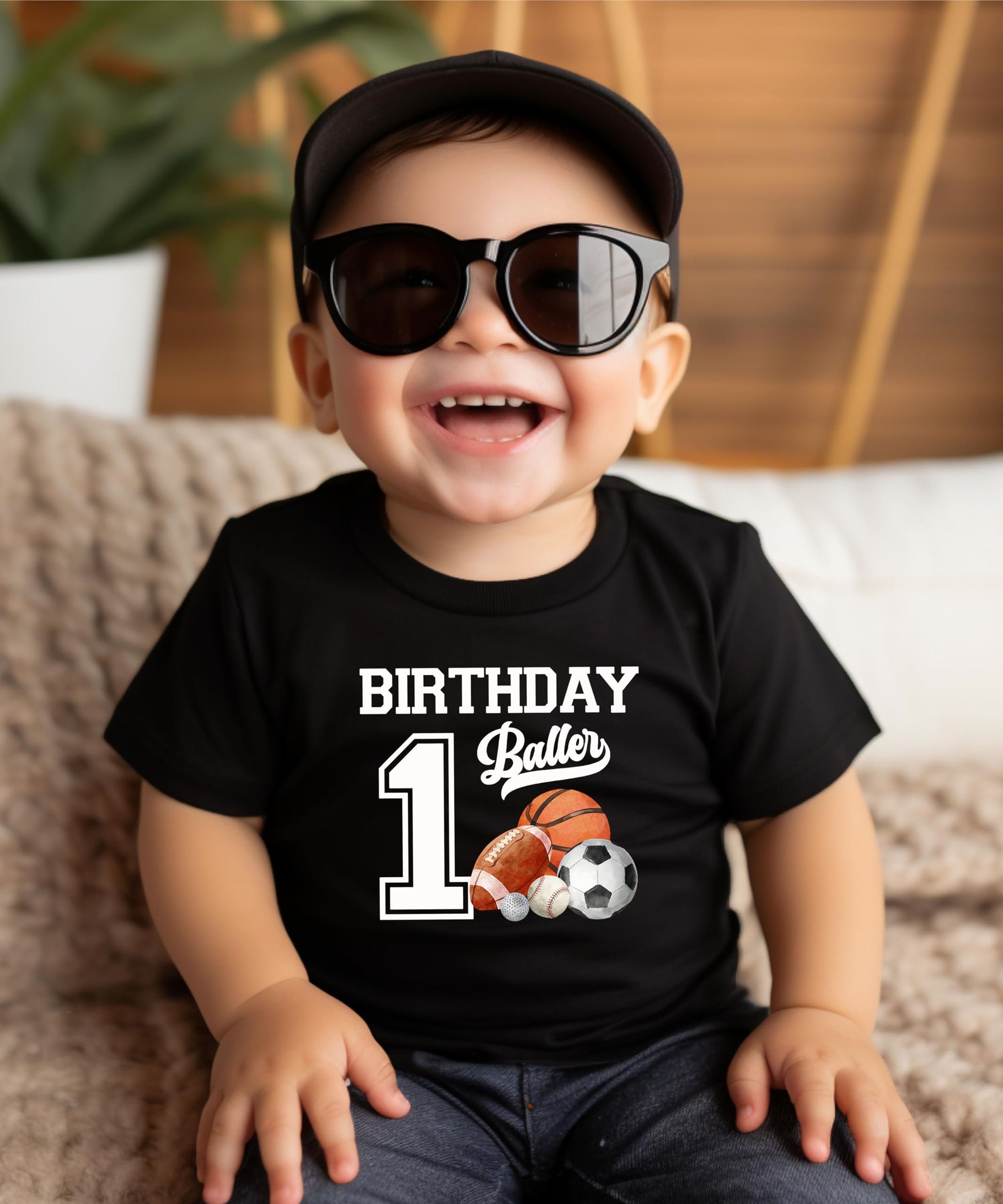 1st Birthday Baller Shirt for Boys Sports Theme Party T-Shirt for 1 Year Old