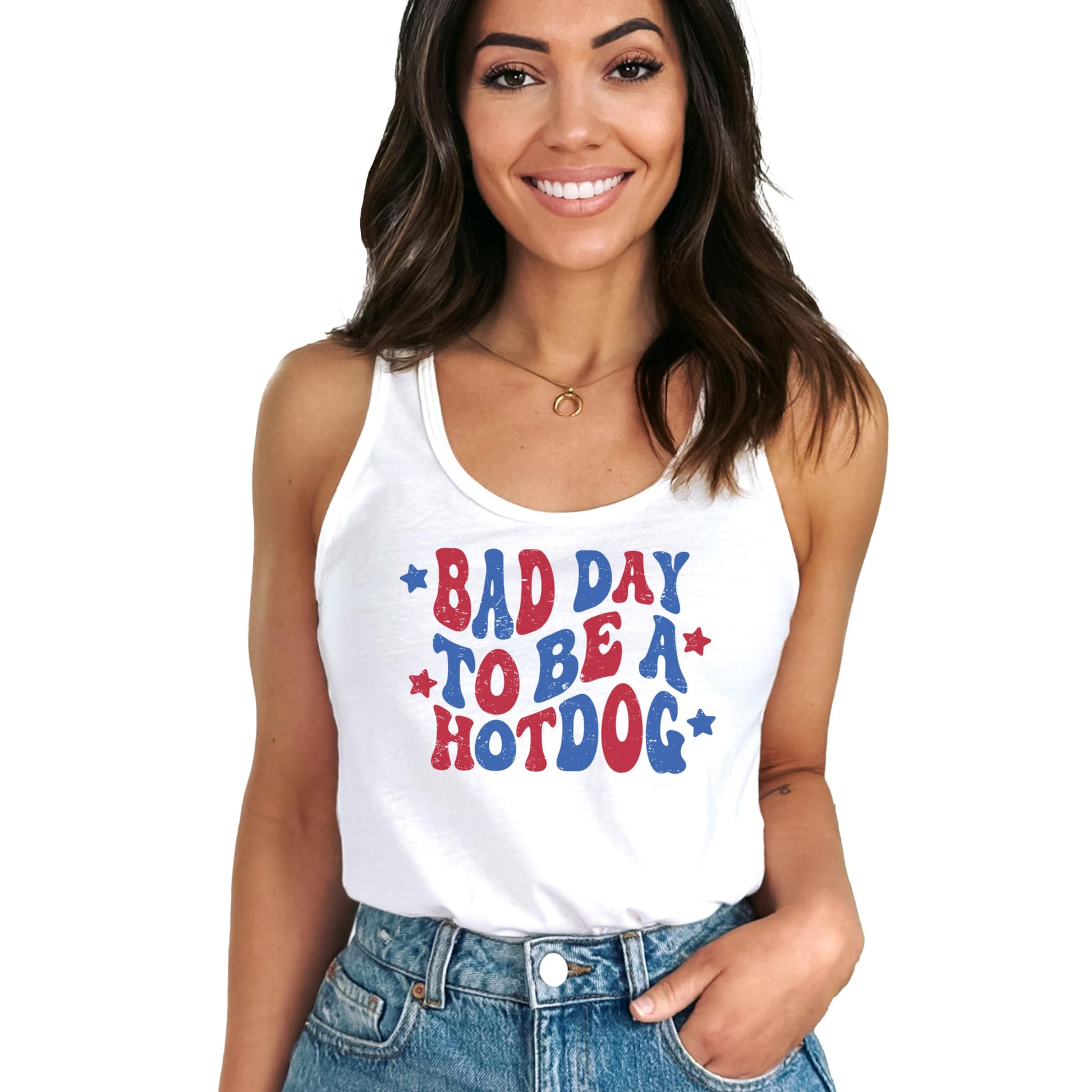 Bad Day to Be a Hot Dog Tank Top for Women and Teens Funny Summer 4th of July Tank