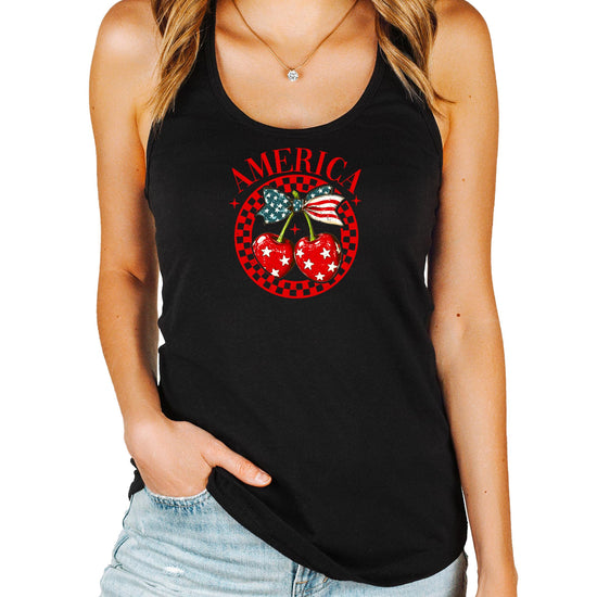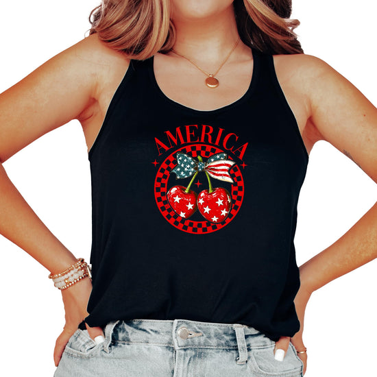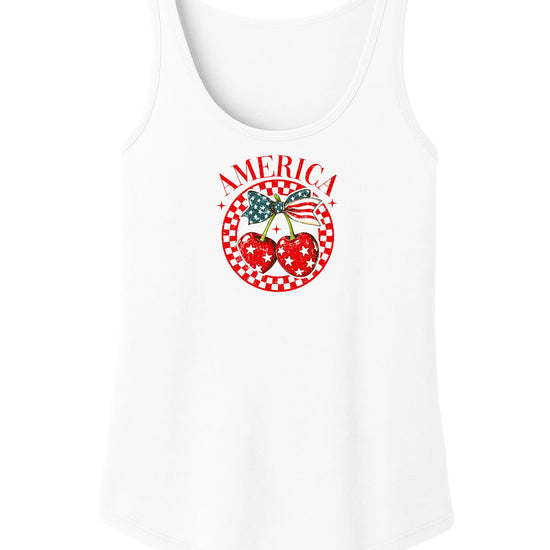 Olive Loves Apple America Cherry Tank Top for Women & Teens Cute Patriotic Cherries Tank