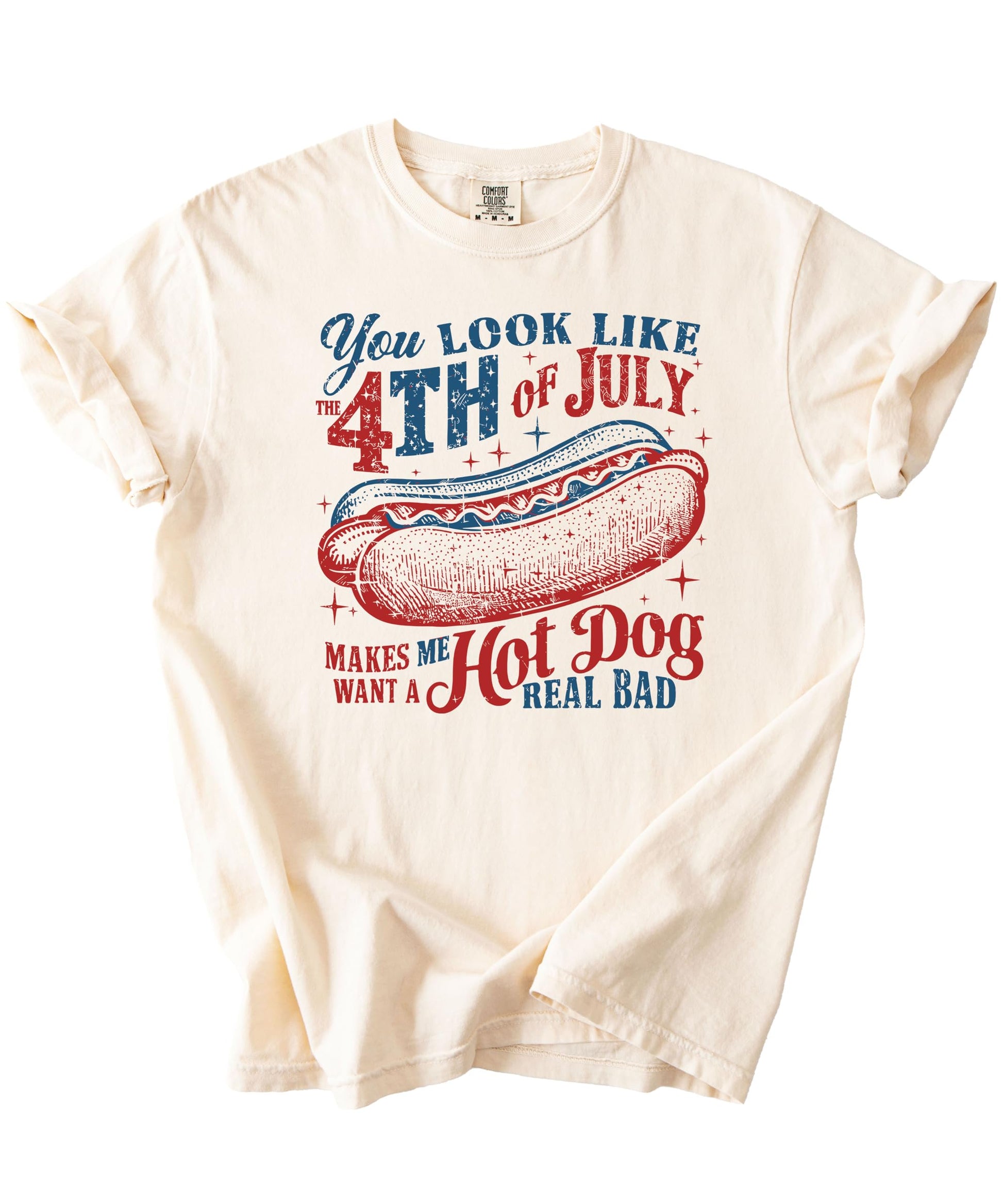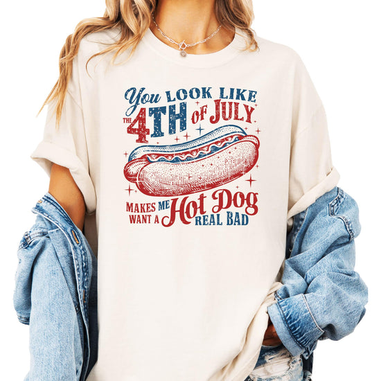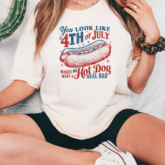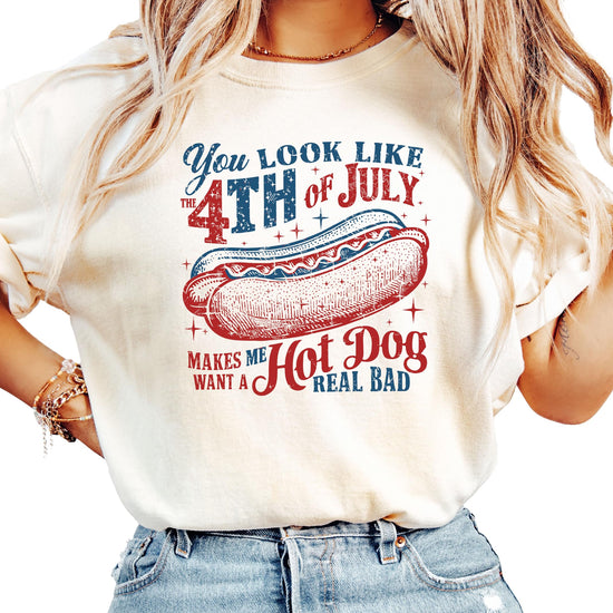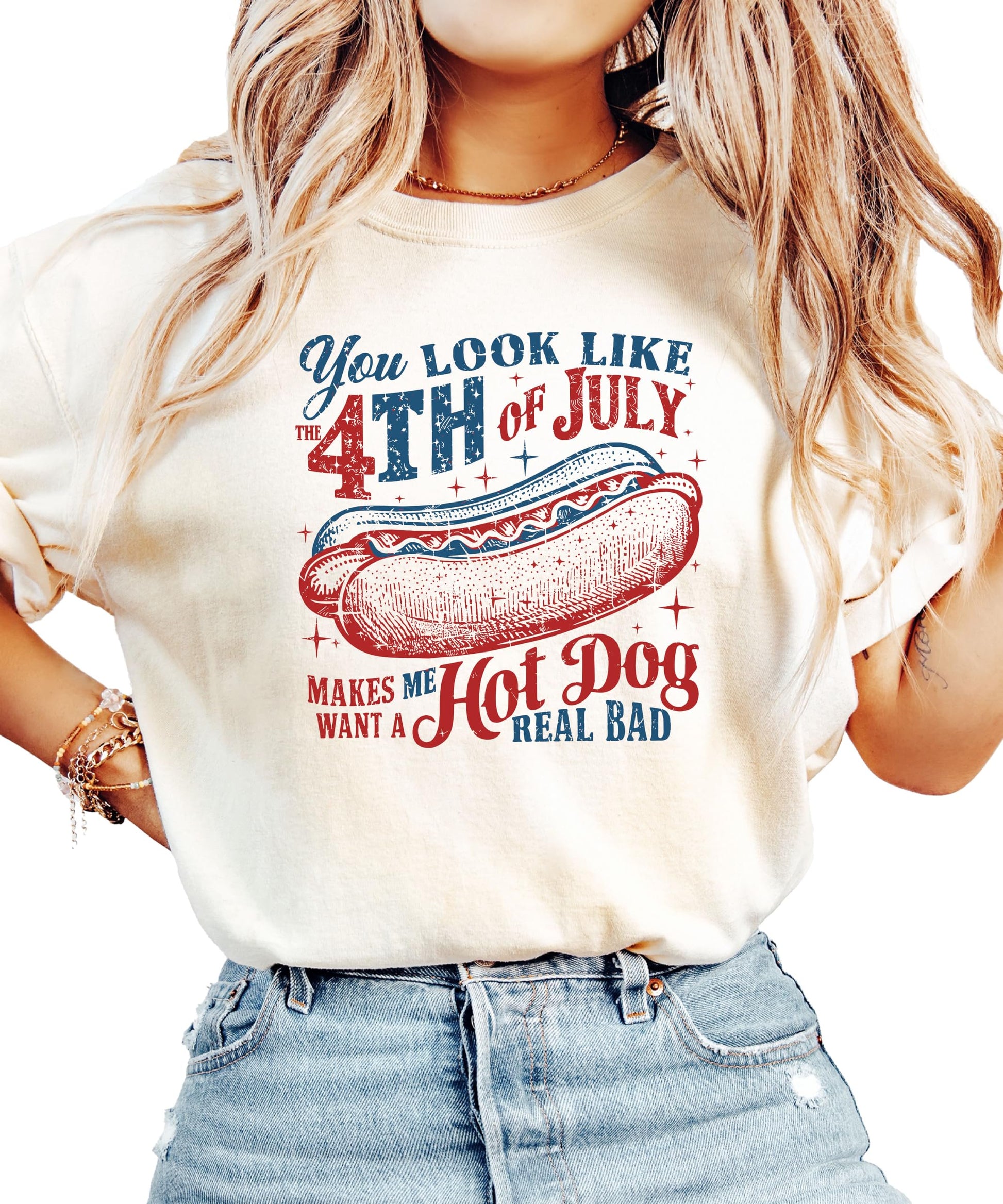 You Look Like The 4th of July Shirt for Women and Teens Makes Me Want A Hotdog Tee